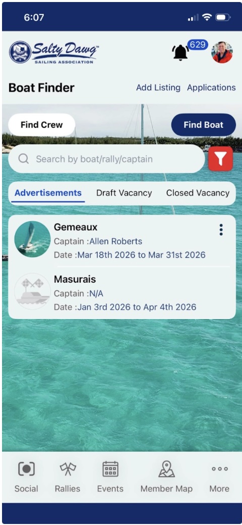 The crew finder module in the App will allow either captains or crew to post availability for specific rallies or passage dates and then view postings that match their listings. Just a reminder, that crew matching is completely between crew and captains, we only provide the platform, we do not screen any postings.
