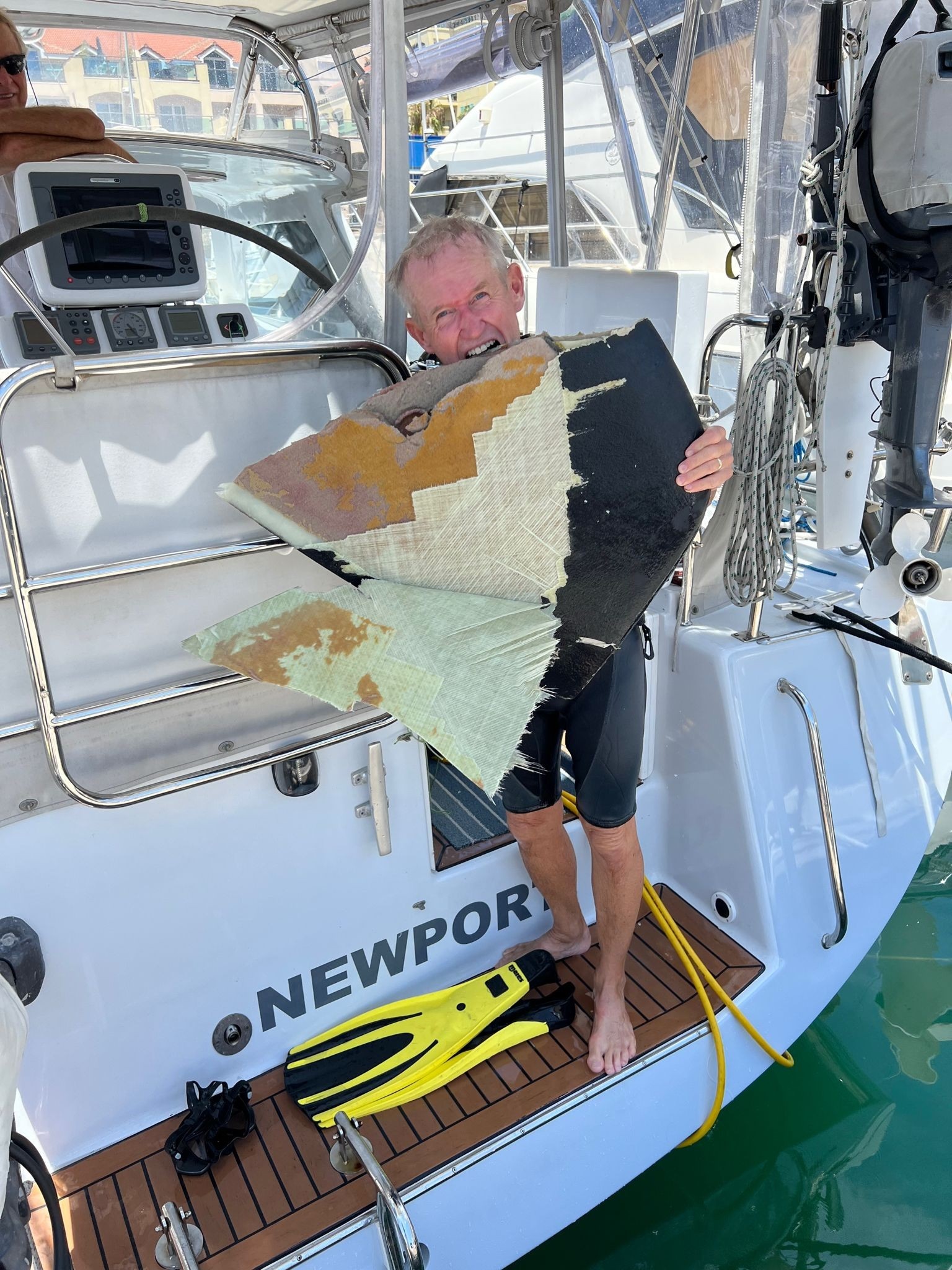 On the final leg to Gibraltar, following my run from the Caribbean to the Azores as part of the Salty Dawg Azores rally, I was approaching land after a particularly rough night where we were hit with stronger-than-forecast winds, when disaster struck. For months, I had been fixated on the orca risk near the Strait of Gibraltar—numerous sailboats had been attacked, their rudders torn off, some even sunk. Theories suggest the orcas are "practicing" hunting, targeting rudders, a behavior spread by a few pods led by an adult female. I had ordered an acoustic deterrent, but it was lost in transit and researching orcas.pt, I opted for a route near Morocco, where attacks were rarer compared to Portugal’s coast. I was wrong. A week out from São Miguel, our last port in the Azores, Morocco came into view. We were making 10.5 knots over the bottom, between wind and a favorable current, when the wheel suddenly spun violently. At first, we saw nothing—then a massive orca surfaced beneath the stern. It was not alone: a pod of 4-5 had targeted Pandora. One crew member captured the chaos on this brief video. It was terrifying. I feared the rudder post would snap or the hull around the post crack open, as in other cases. Pandora’s carbon-fiber rudder post held, but the lower half of the rudder was torn off, dangling by a flap of fiberglass. The Hydrovane wind vane steering rudder was also ripped off. Only in the marina did we grasp the full damage. The next morning, I donned a wetsuit, fired up my hookah air compressor, and spent an hour underwater sawing away the mangled rudder. Miraculously, the detached piece had remained tethered, giving the fabricator in Almerímar, Spain, a template for repairs. Despite the damage, we motor-sailed to Gibraltar, then 150 miles to the marina in Almerimar, where Pandora will be hauled out for the season in early August. So, what is the risk of damage from orcas, for cruisers passing thru the strait of Gibraltar? For Pandora the risk was higher than I anticipated but the experience has made me want to learn more. With that in mind, I will be talking to experts in this area and plan a webinar this fall to share my findings where I will hopefully be able to share what experts say about “best practices” to make it possible to transit safely. While Pandora suffered significant damage from our orca encounter, I am still glad that I made the trip. Brenda and I are very much looking forward to the coming seasons cruising the Mediterranean. As we learn more about our new cruising ground, I will continue to share what we learn. I began my voyage aboard Pandora in Trinadad, departing in April, with stops along the eastern Caribbean, making my way to Bermuda and to Horta as part of the SDSA Azores rally and then on to Gibraltar. I wrote regularly on passage and while exploring the Azores on www.sailpandora.com as well as a description of the attack and the particularly difficult night as we approached the coast of Morocco and Portugal in this post.
