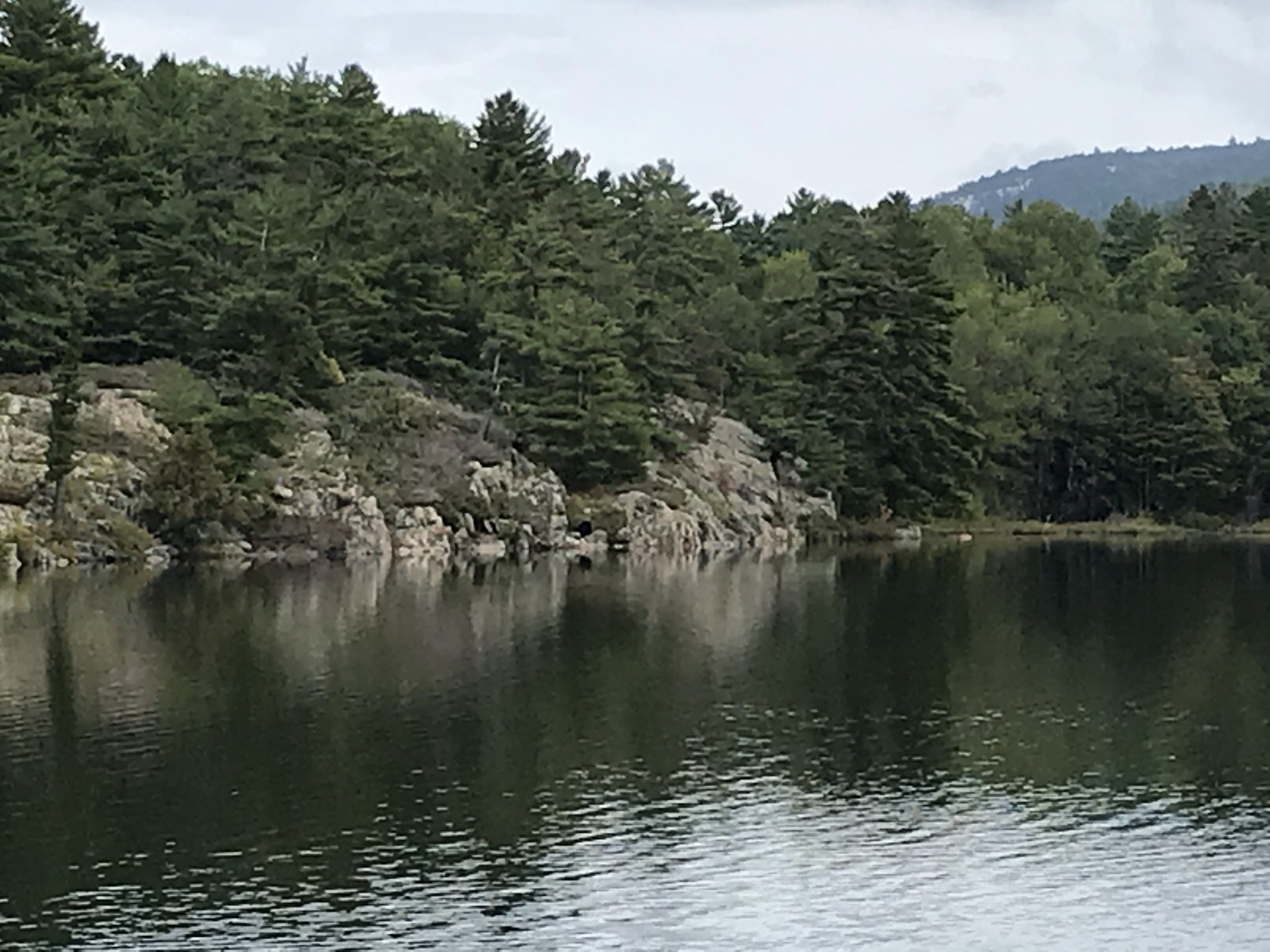 The day was very relaxing with me reading an entire book and Bob pulling out his beloved Sailrite sewing machine to sew a proper harness to safely hoist the dinghy engine aboard Tiger Lily. The real highlight came when I spotted two black bears wandering along the shoreline. We watched them for 30–40 minutes through the binoculars, completely captivated by the experience. I didn't want to think about the fact that their location was exactly the start of the trailhead to Topaz Lake! You actually can see one of the bears in the picture if you look really closely!