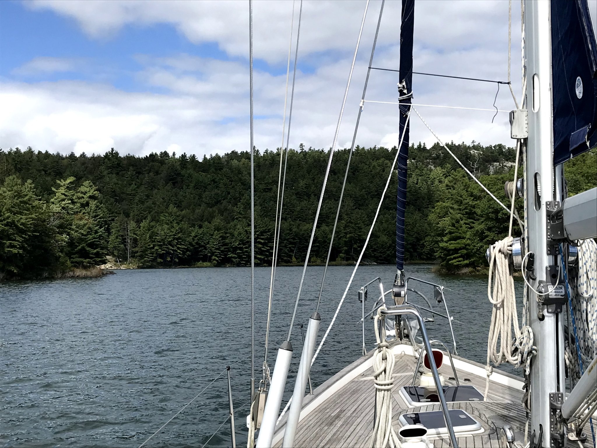 Favorite anchorage? That's so hard! I will write about our FIRST favorite anchorage way back in 2019 when we moved out of our house in the Chicago suburbs onto SV Tiger Lily. We decided to explore Lake Huron (Georgian Bay and the North Channel) before we headed out the Erie Canal to the Atlantic. One of the blogged-about spots is The Pool (46 02.693'N, 81 28.683'W) on the north shore of Georgian Bay. It is reached by going through a long narrow fjord at the east end for Baie Fine. The passage through the fjord took an hour of careful attention, especially with our seven-foot draft and some very shallow spots along the way. Thanks in part to unusually high water levels that year, we slipped through without a single “bump." Normally this anchorage is bustling with boats, but arriving in early September we were late in the season so we were sharing the Pool with just one other boat.